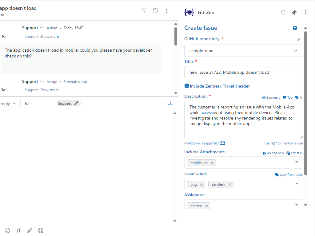 • Developer & Support-Friendly: Developers do not require Zendesk licenses; support tickets can be referenced purely through Git-Zen.