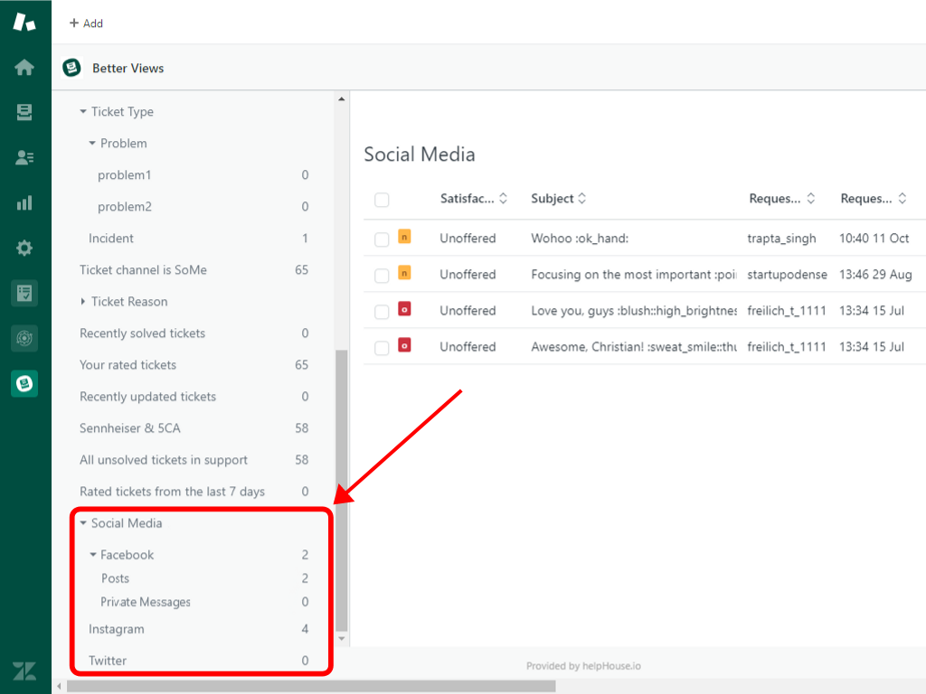 For instance, if you want to divide your tickets into SoMe types. Instead of having 4 different views, like this: