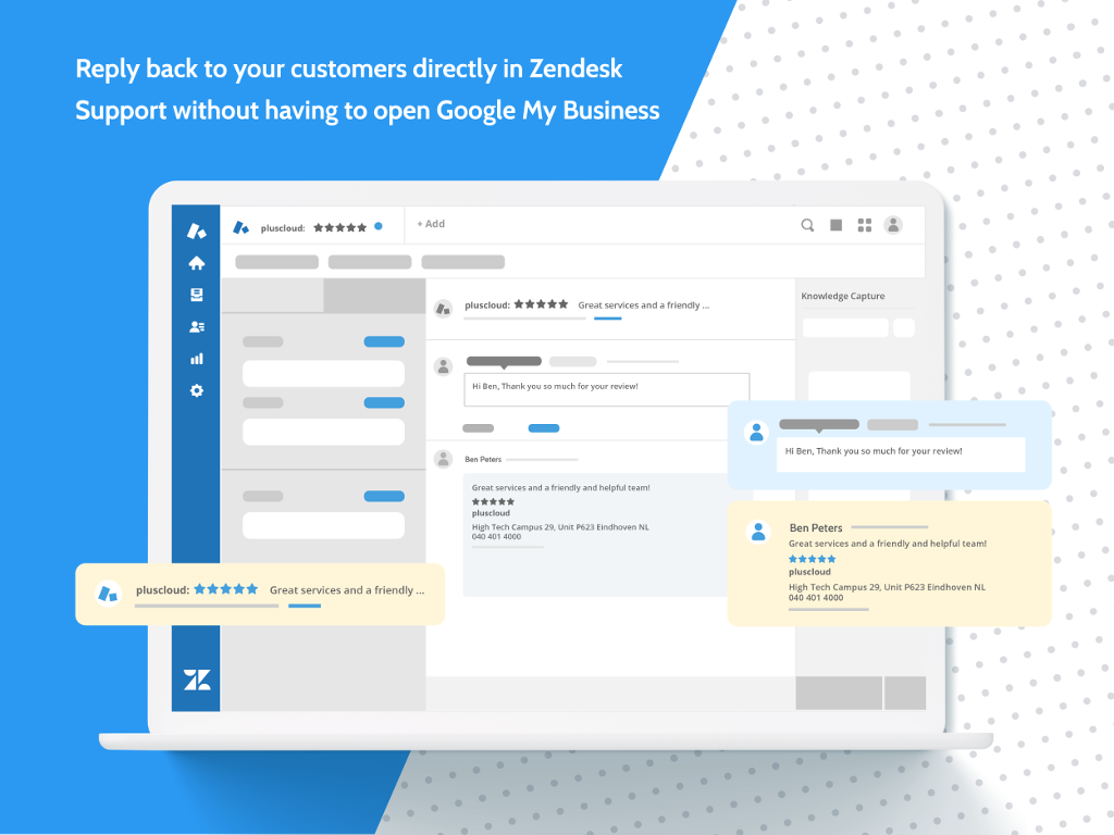Google My Business is the centralised platform for businesses to manage the listings on Google Maps. For an example for retail businesses with one of multiple locations. Often businesses only a few people have access to such reviews with Google Maps which results in very long resolution times on reviews. With the Google My Business integration all reviews are directly arriving in Zendesk and depending on the routing rules of your business the review can directly be answered from Zendesk without opening Google My Business separately.
