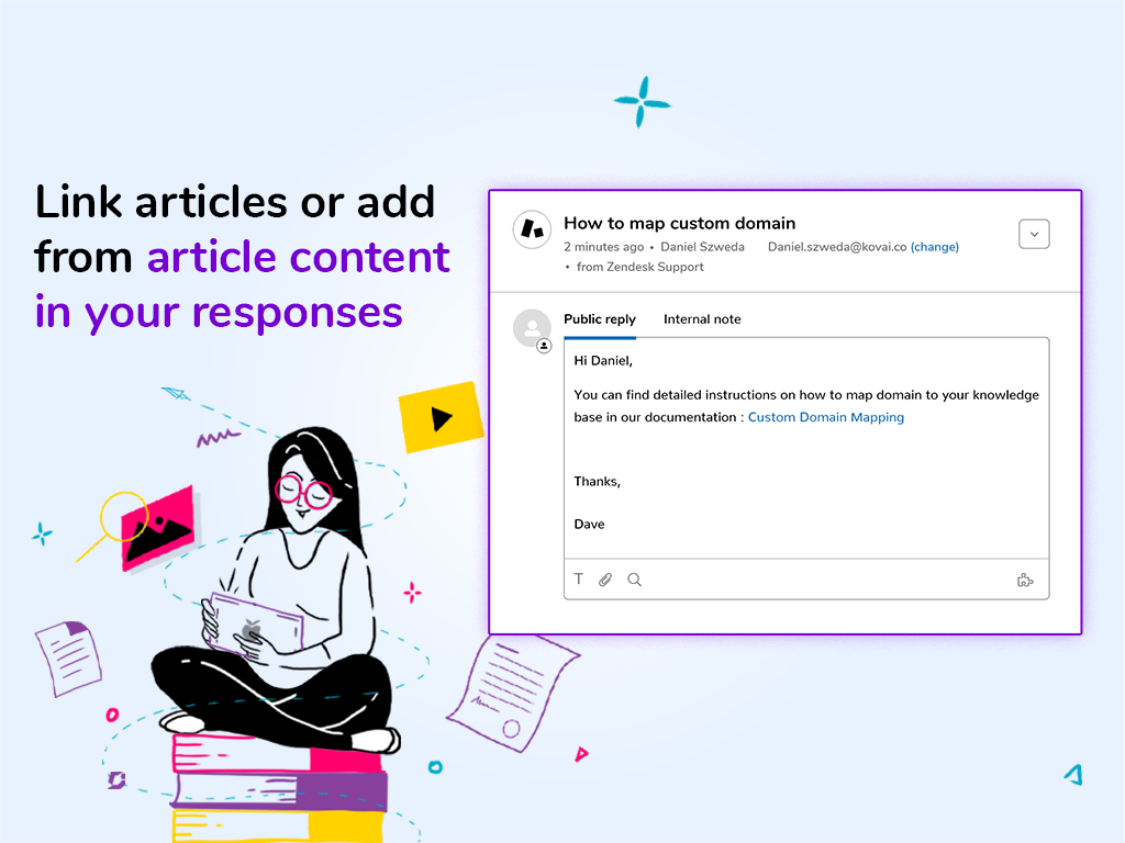 Respond to your ticket using the searched article by either inserting the link, article content, or a custom response using the information from the article.