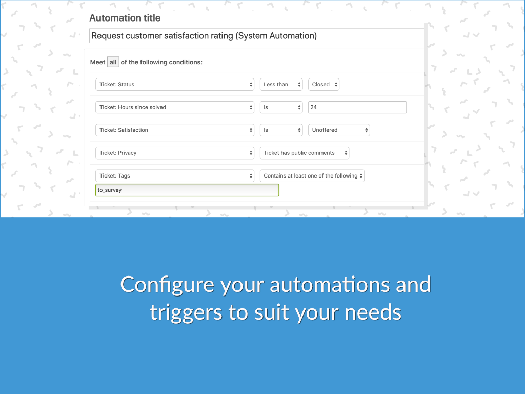 Looking for a way to randomize surveys? Random Tagging allows you to set tags randomly when a ticket solves while you get to control the chance it succeeds.