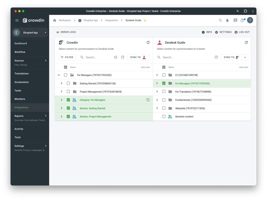 Source texts from Zendesk will be uploaded to your Crowdin project automatically and become available for translators you invite to your project.