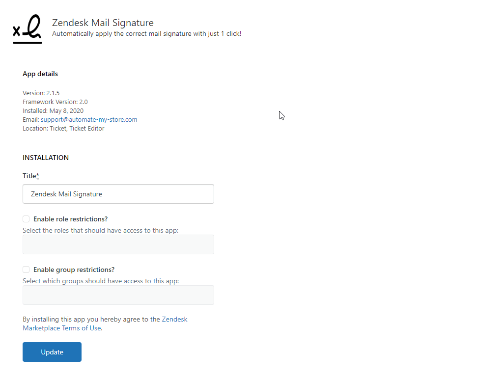 - Simply click Install (on the top right of the Zendesk app store page of this app)