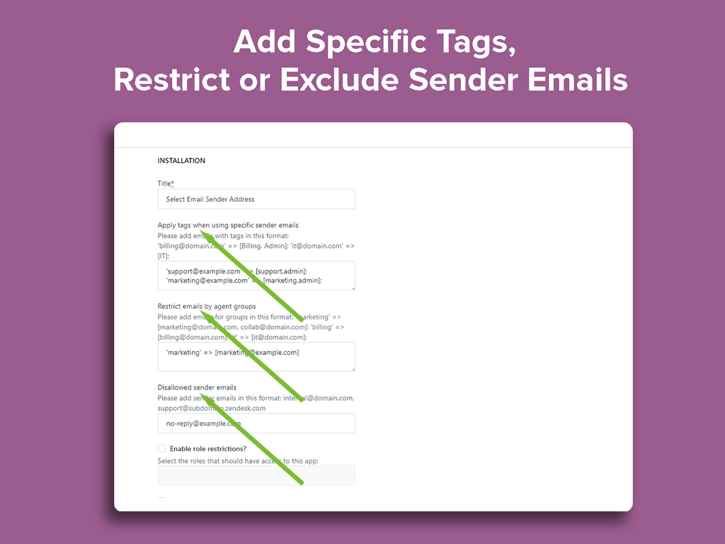 • Automatically apply the correct email sender address based on the agent's user and ticket group