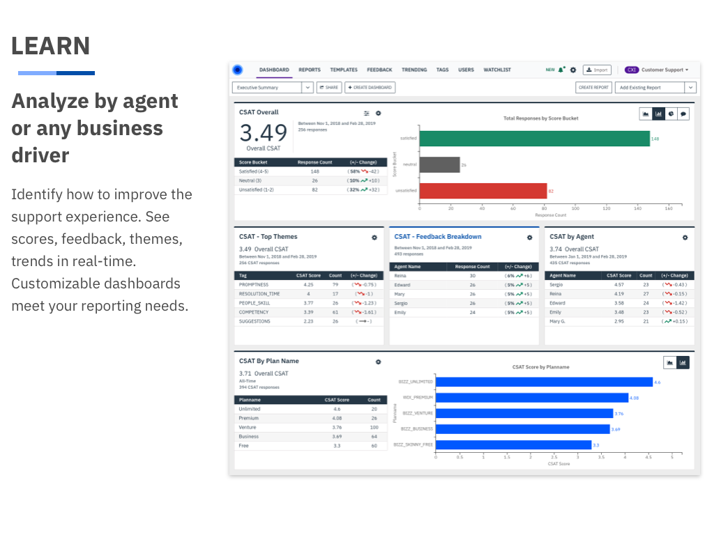 Analyze metrics and filter feedback in real-time -- by agent, region, or any business driver -- right in your InMoment dashboard. Every response in InMoment is enriched with customer data for meaningful context and follow up.