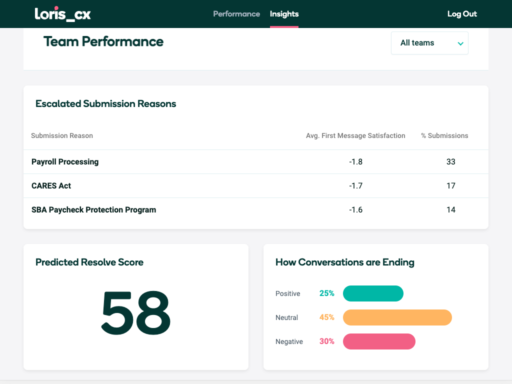 Loris analyzes and provides insights on every message. Stop relying solely on a manual QA process and customer surveys.