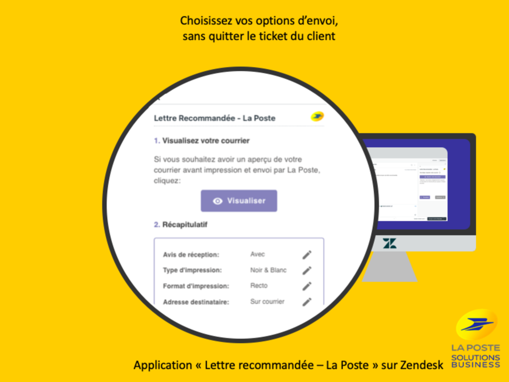 L’application « La Poste – Lettre recommandée » est très pratique pour faire gagner du temps à vos équipes, et avoir un suivi de dossier centralisé directement dans Zendesk