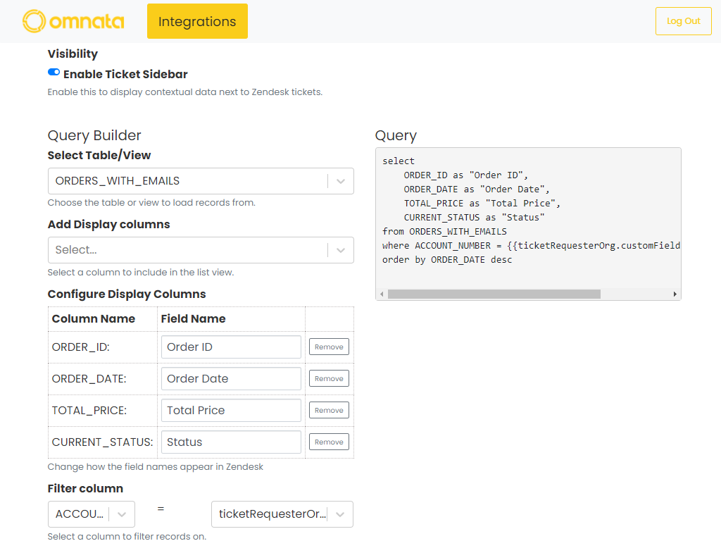 Omnata Connect for Zendesk Support, you can display contextual information in the ticket sidebar, sourced directly from your data warehouse. We currently support Snowflake, with BigQuery and Rockset available in private preview.
