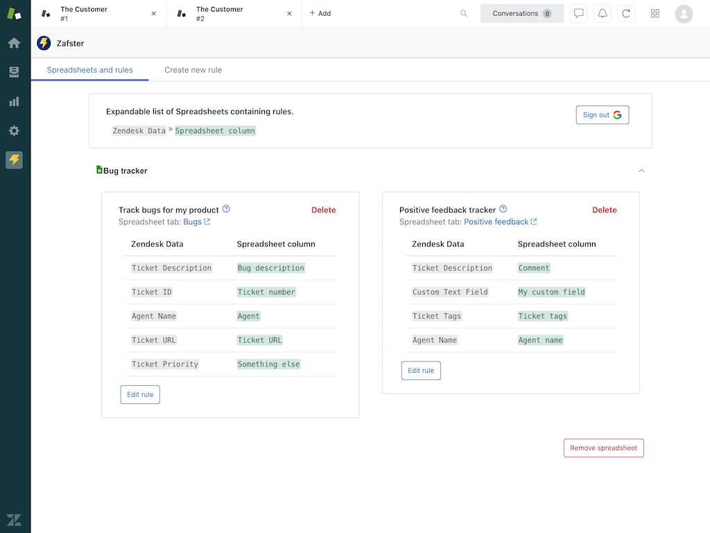 No more copy / paste data from tickets manually. Zafster allows you to manipulate your ticket data the way you need it. Simple click a button, and all the data you need and want is extracted to a Google Spreadsheet of your choice.