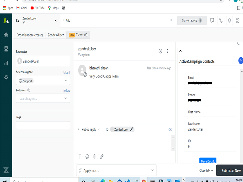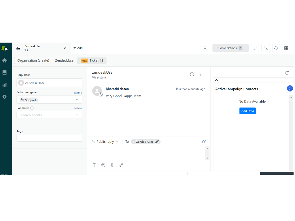View your ActiveCampaign data within the Zendesk window. On the Right panel of the Contact module agent can Add / View ActiveCampaign data without leaving Zendesk Interface. This Zendesk-ActiveCampaign CRM Integration enables you to keep your sales and support teams in sync with less effort