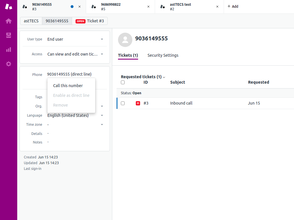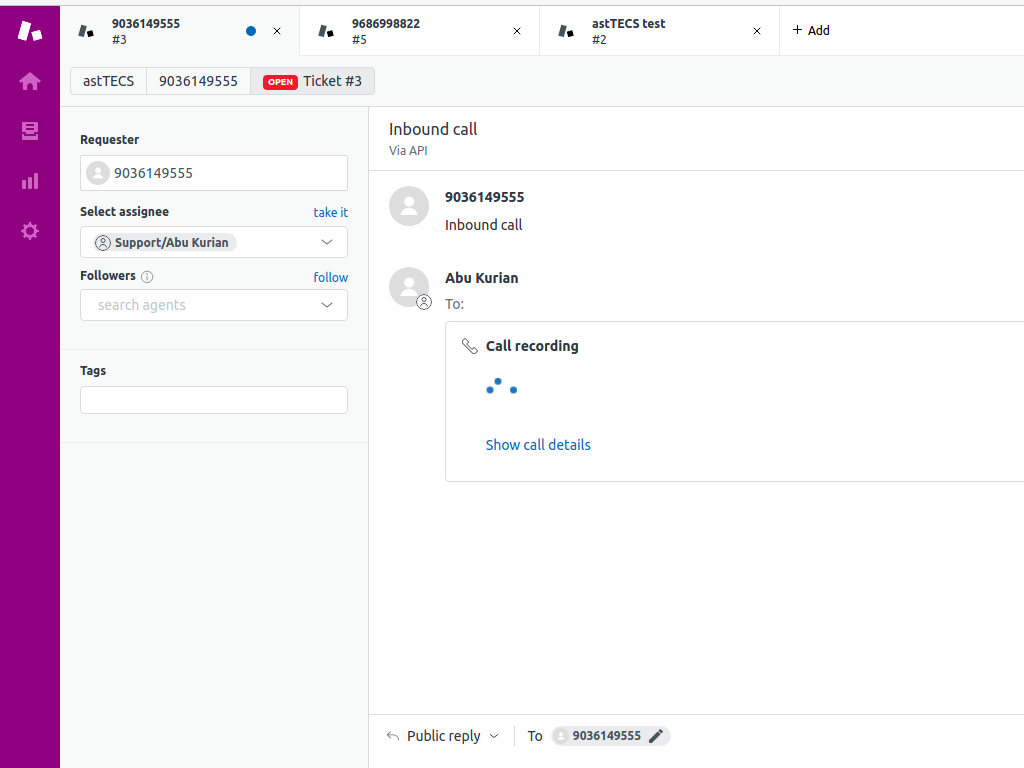 - Call recording saved on the ticket.
