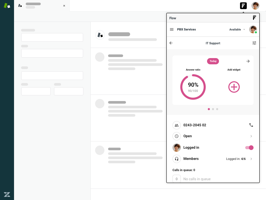 • Focus on the conversation. With Flow for Zendesk agents no longer need to switch between applications during an interaction to use the features required to provide an excellent customer experience.
