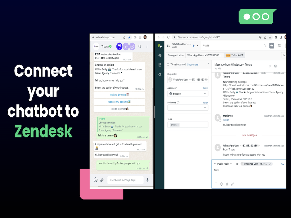 Create your own WhatsApp Chatbot and connect it to Zendesk in minutes.