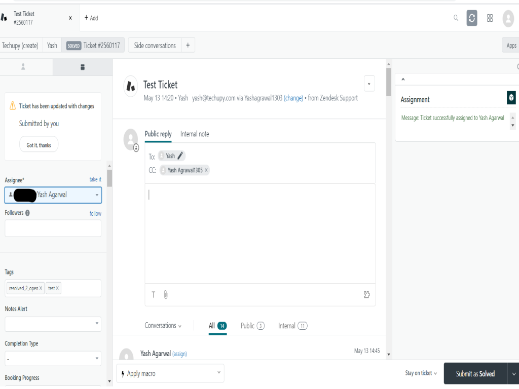 The app also shows the assignment status in the right side app panel of the ticket. It mentions if the ticket is Already Assigned to the same user, Assignment skipped due to staff role, Assigned to staff successfully OR Assignment failed due to any error.It works perfectly fine in the play mode as well.