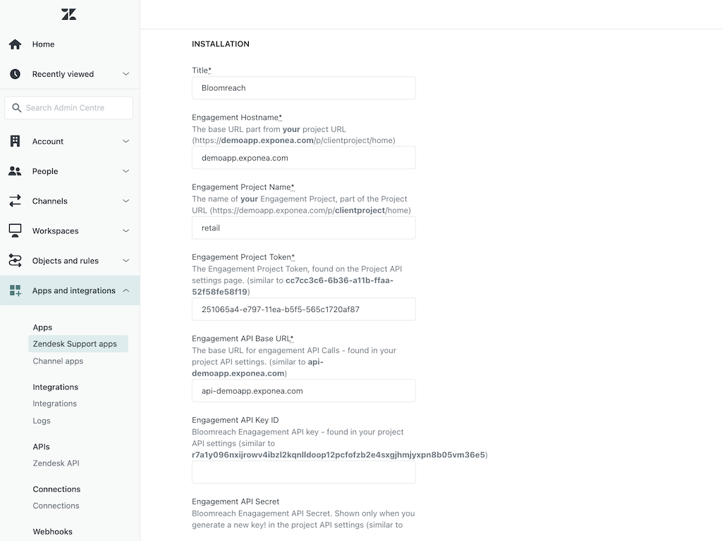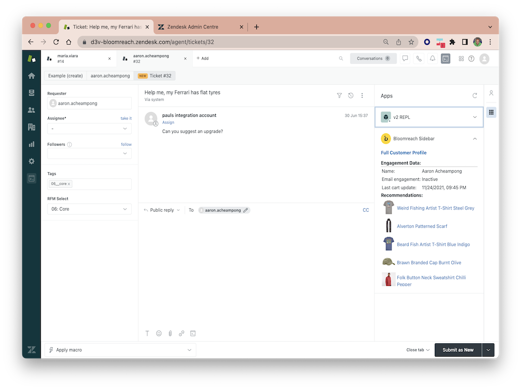 Bloomreach Engagement data in your Zendesk Ticket Sidebar.