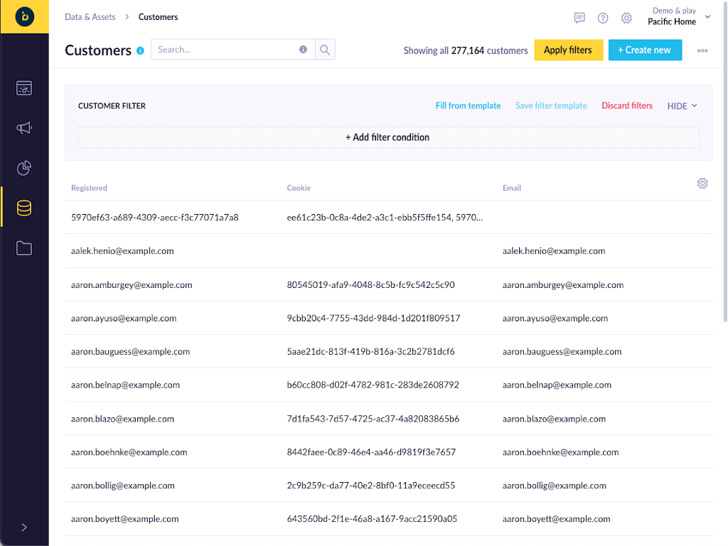 Remove data silos and unify customer data from any source into 360° customer profiles. Use this data to launch personalized campaigns in real-time through Bloomreach Engagement built-in channels.