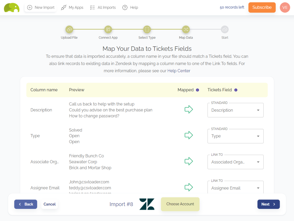 Loader has an easy-to-use user interface that allows you to preview, select, link, and import data into Zendesk without any coding or special knowledge. Importing data into Zendesk does not have to be difficult. And it should not take too long or require the use of expensive consultants.