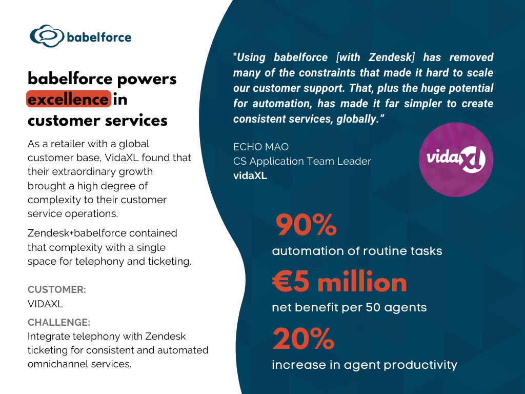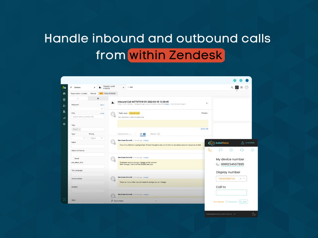 babelConnect provides powerful, integrated inbound and outbound telephony within the Zendesk interface.