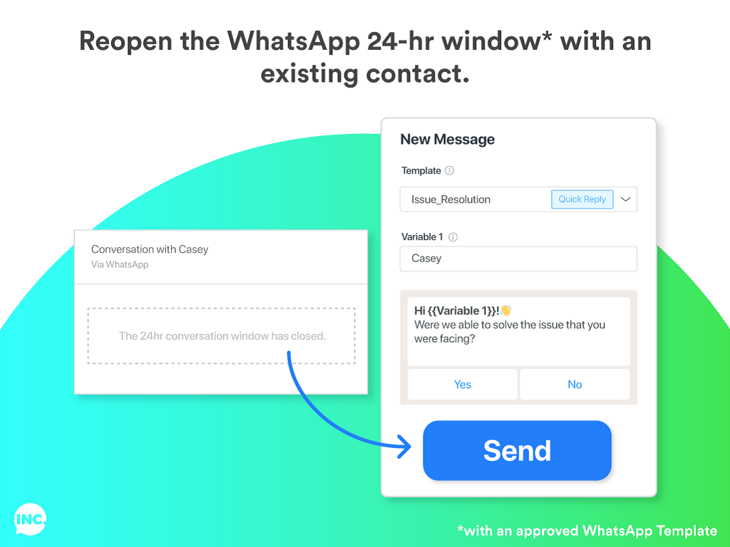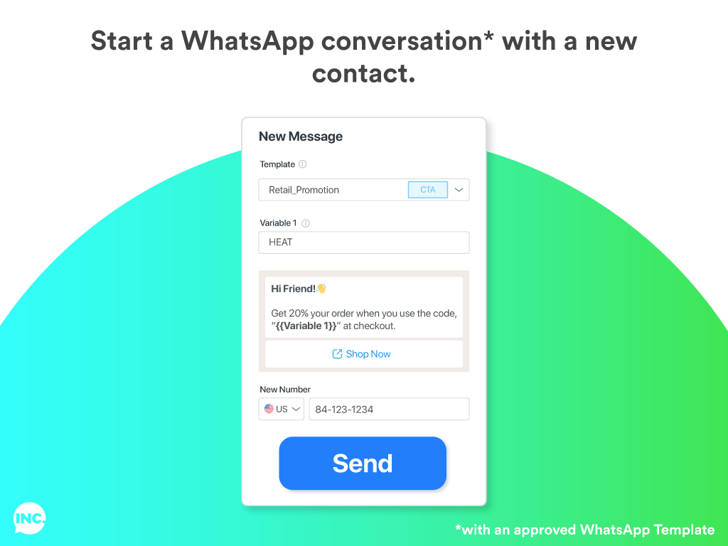 • Let’s you proactively send a WhatsApp Template Message to customers without an open WhatsApp ticket