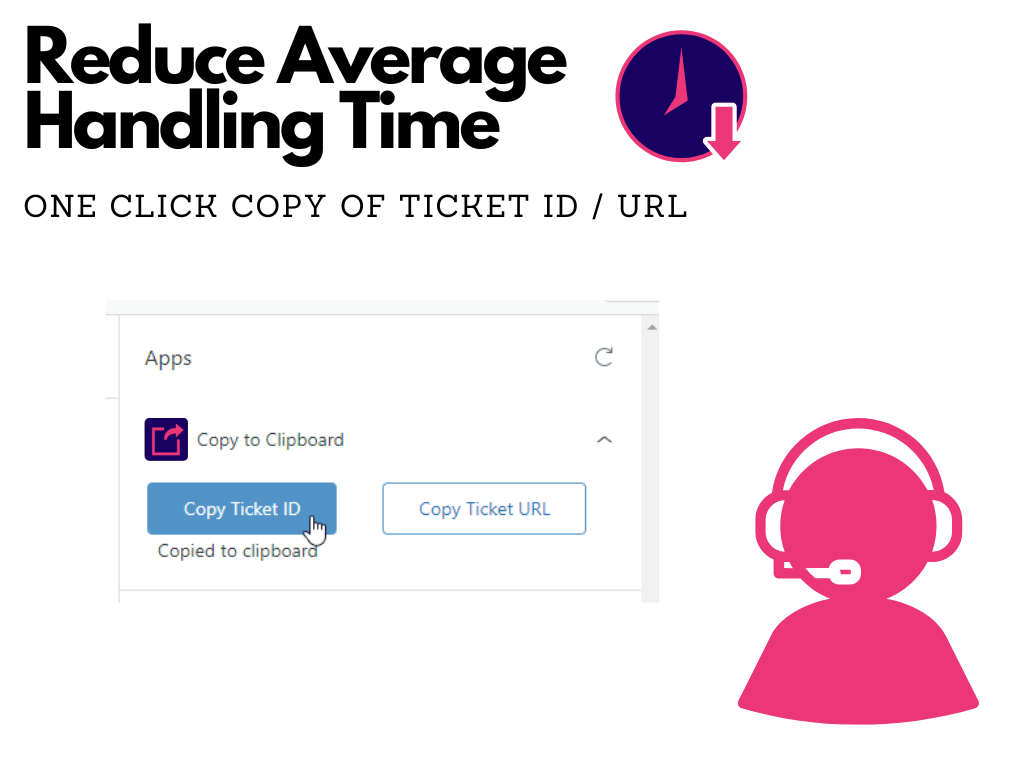 If your agents have to copy the Zendesk Ticket ID to other systems they have to do multiple clicks in order to get the ticket id. By using this app it is just one click! Reduce the average handle time of your tickets and reduce your cost.