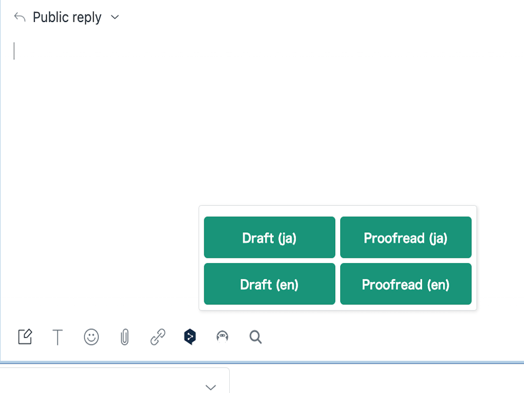 Draft (Japanese): Generate draft responses in Japanese. Utilize ChatGPT to read the ticket conversation and generate a base response for you.