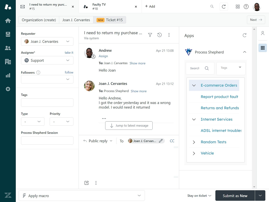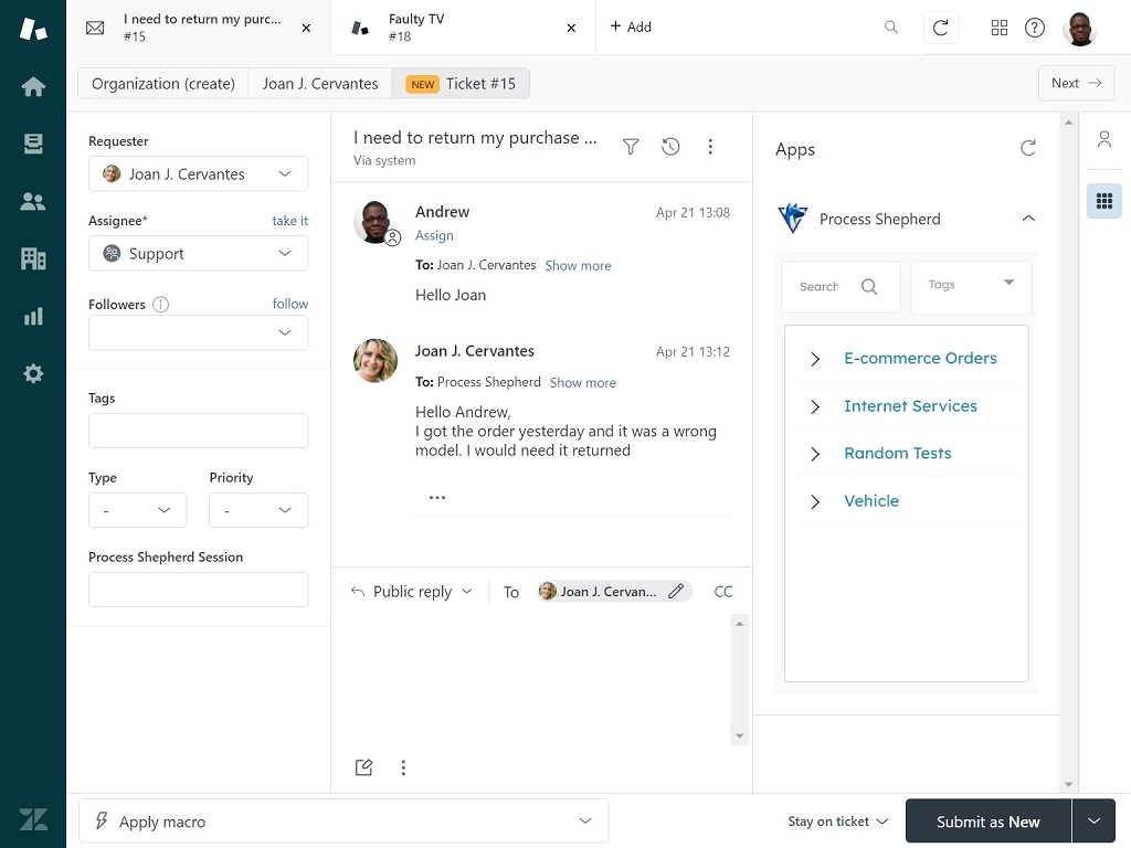 4. Open a Zendesk ticket and press the Process Shepherd app icon on the right hand side of the page.### SupportWe are here to help you if there are any issues, please reach out to us.