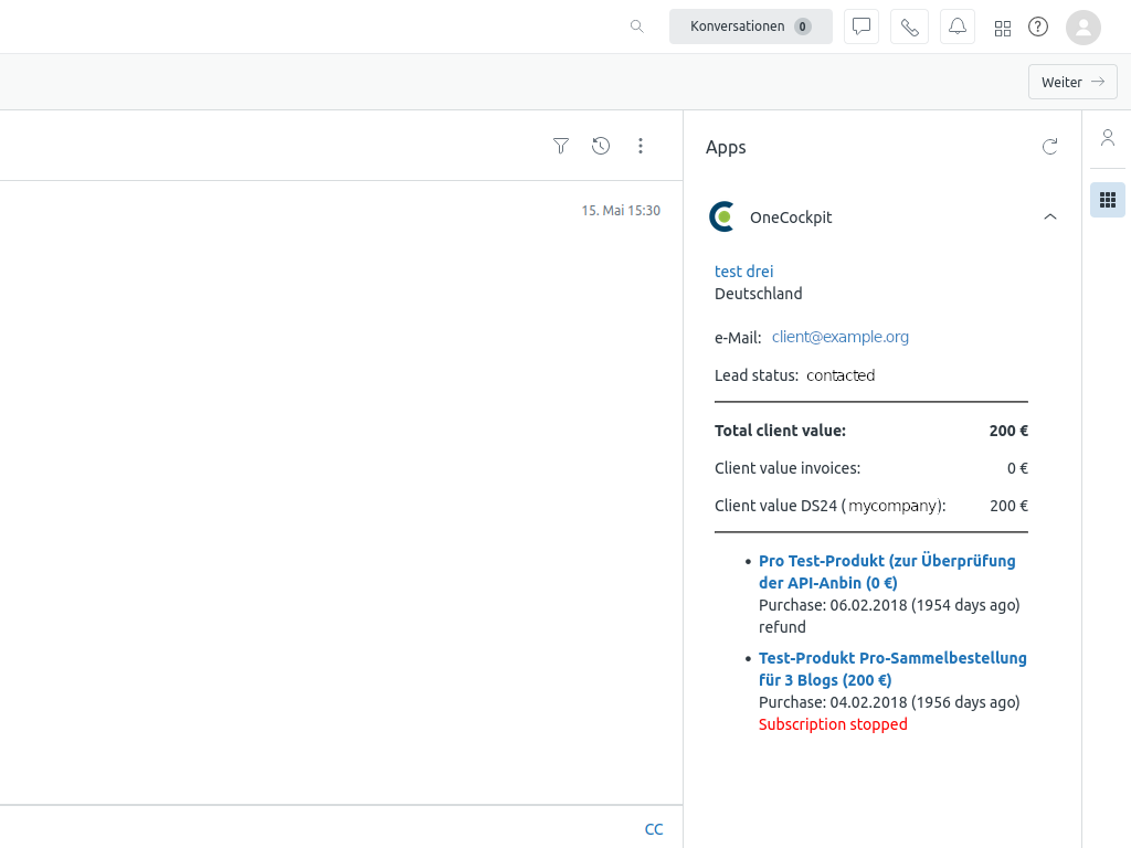 Display data from your OneCockpit Installation in your Zendesk ticket sidebar.