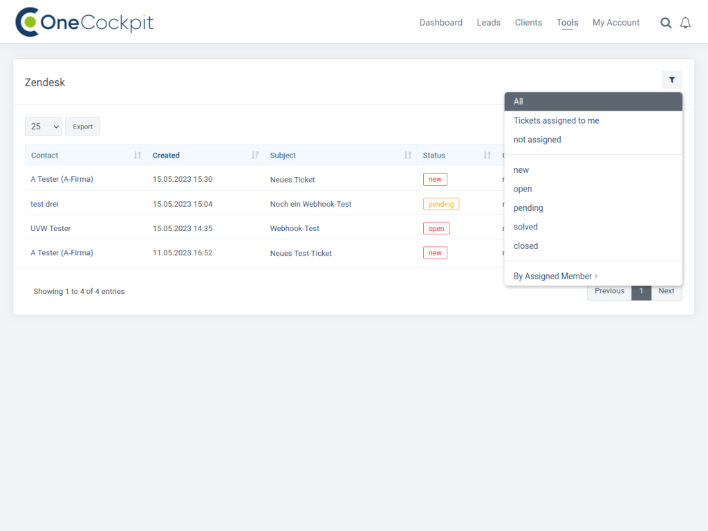 OneCockpit is a software for customer management and CRM. It concisely displays customer data from different tools. Leads can be easily managed with the integrated CRM tool. This simplifies workflows. This app has the following functions: + In the OneCockpit customer overview, Zendesk tickets are listed and displayed. + From within OneCockpit, you can create a new Zendesk ticket. + In Zendesk, the customer data from OneCockpit is displayed next to a ticket. This app can only be used with an active OneCockpit account.