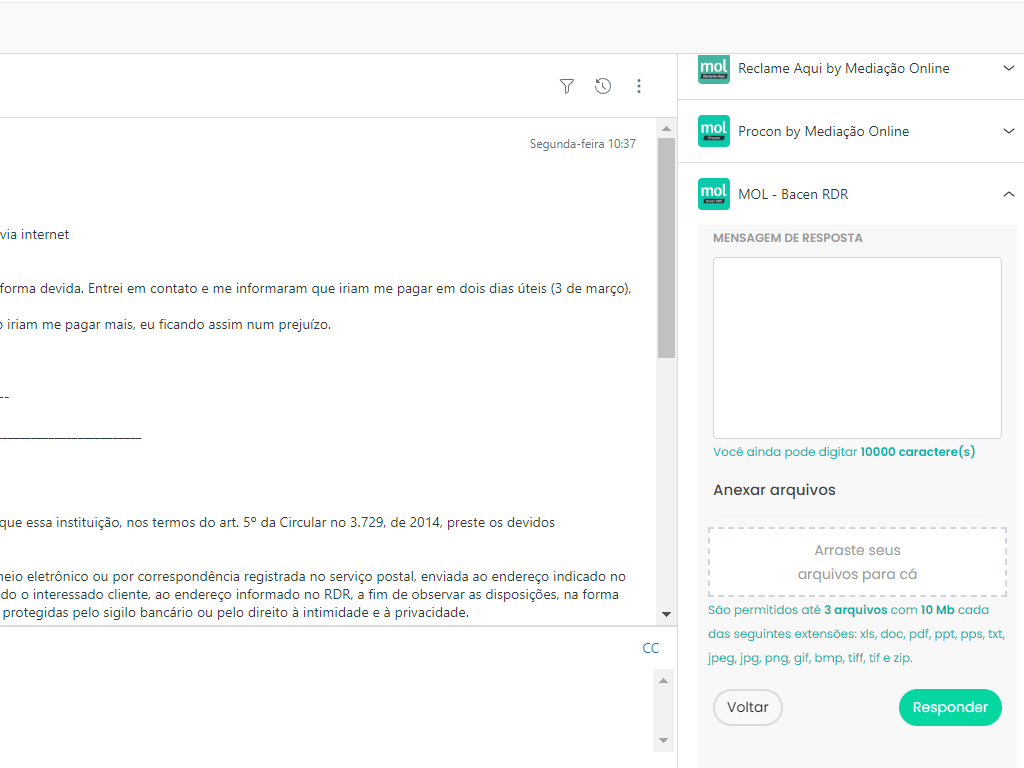 Agora, com a MOL, você vai ter as demandas do Bacen RDR dentro do Zendesk