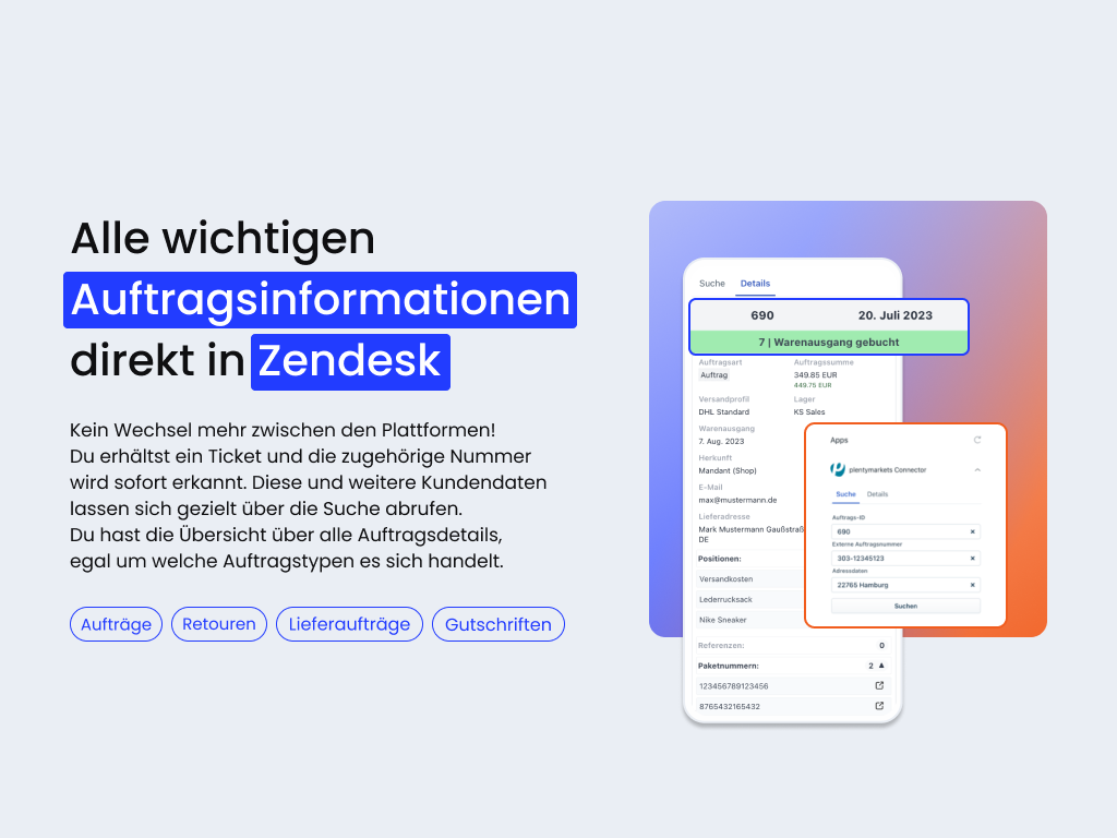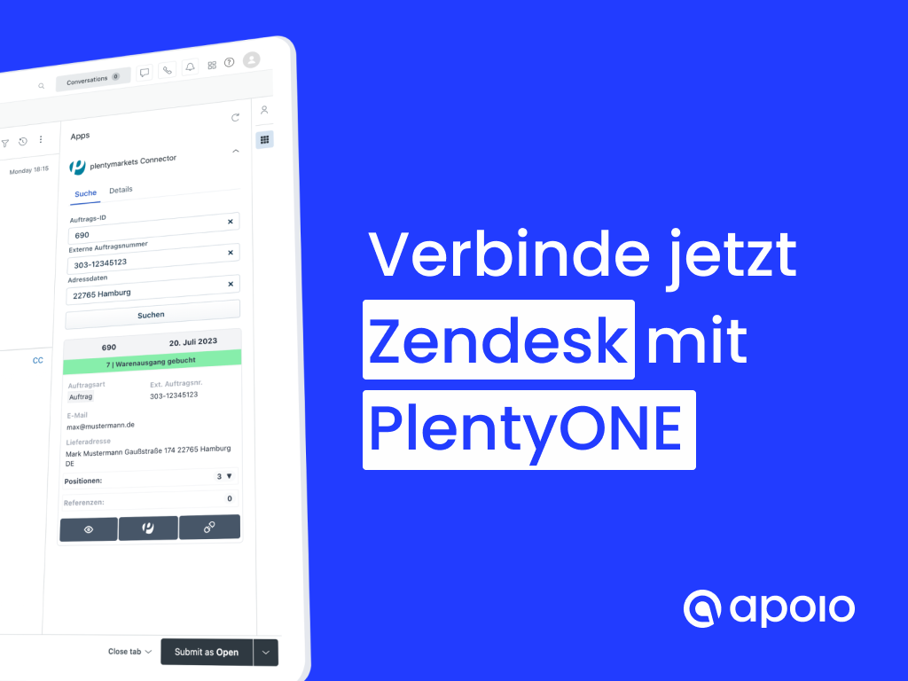 You know the challenges of customer service: Tickets related to orders, manual searches to find order details, and constantly switching between different platforms. Thanks to apoio's PlentyONE Connector, this becomes a problem of the past.