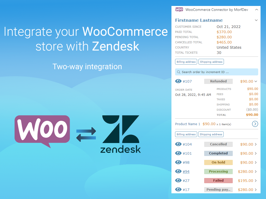 Connect your Zendesk account with WooCommerce store.