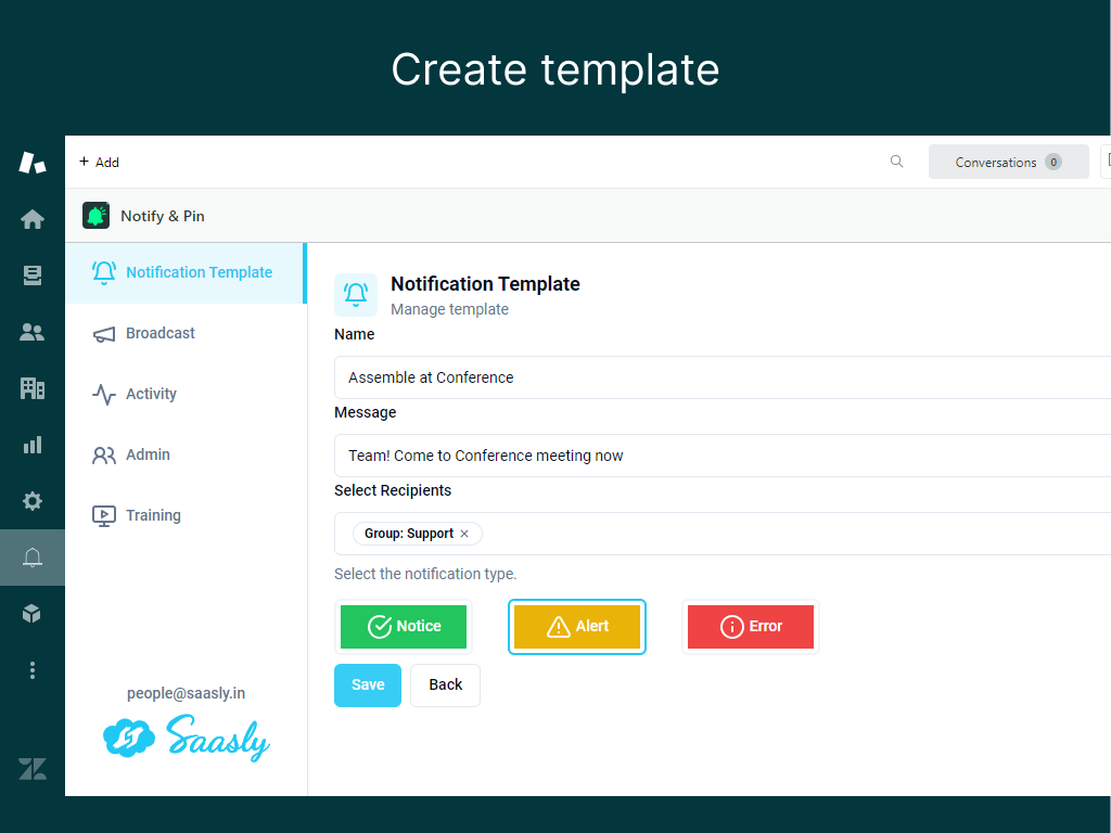 Notification Templates: Create reusable templates for efficient communication in recurring scenarios.
