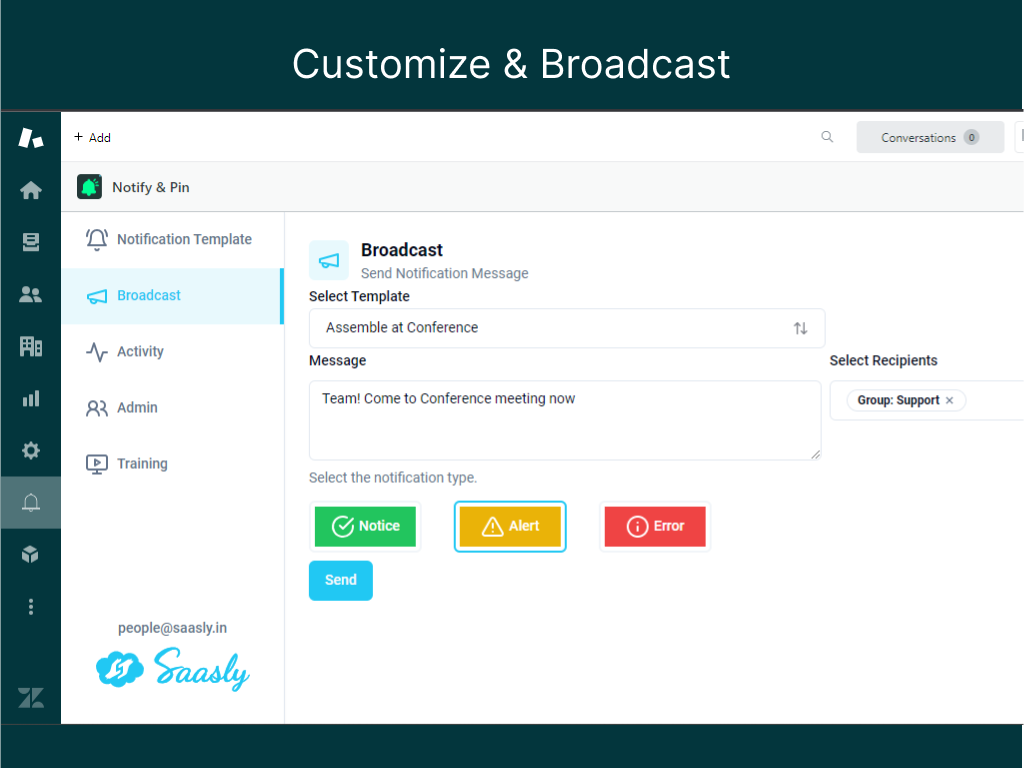 Targeted Notifications: Direct messages to specific groups or individual agents for personalized communication.