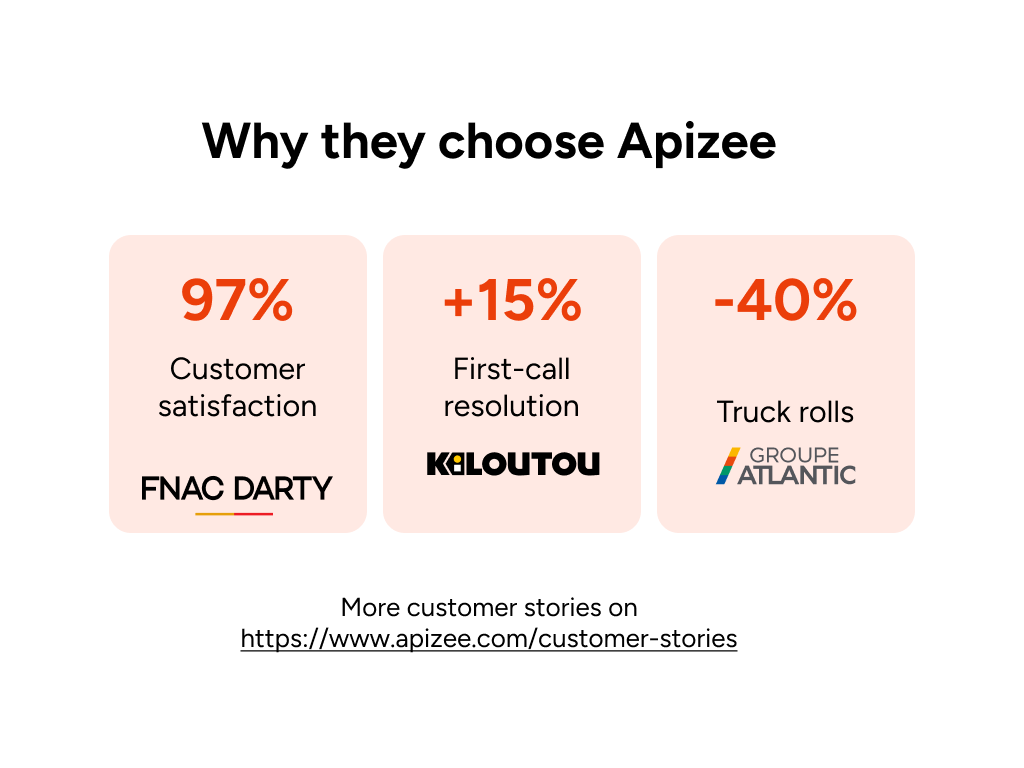 Apizee enhances sales and support performance, allowing for streamlined resolutions, even in intricate scenarios. This platform amplifies human connections, fostering clearer understanding and leading to heightened customer satisfaction.
