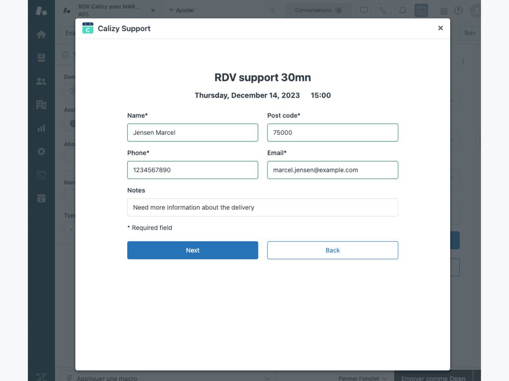 L'intégration du service de prise de rendez-vous téléphonique dans Zendesk a simplifié notre gestion des appels. Les clients peuvent choisir leur créneau horaire, réduisant ainsi les rendez-vous manqués grâce aux rappels automatiques. Cela a optimisé notre efficacité et amélioré la satisfaction client. Solution hautement recommandée.