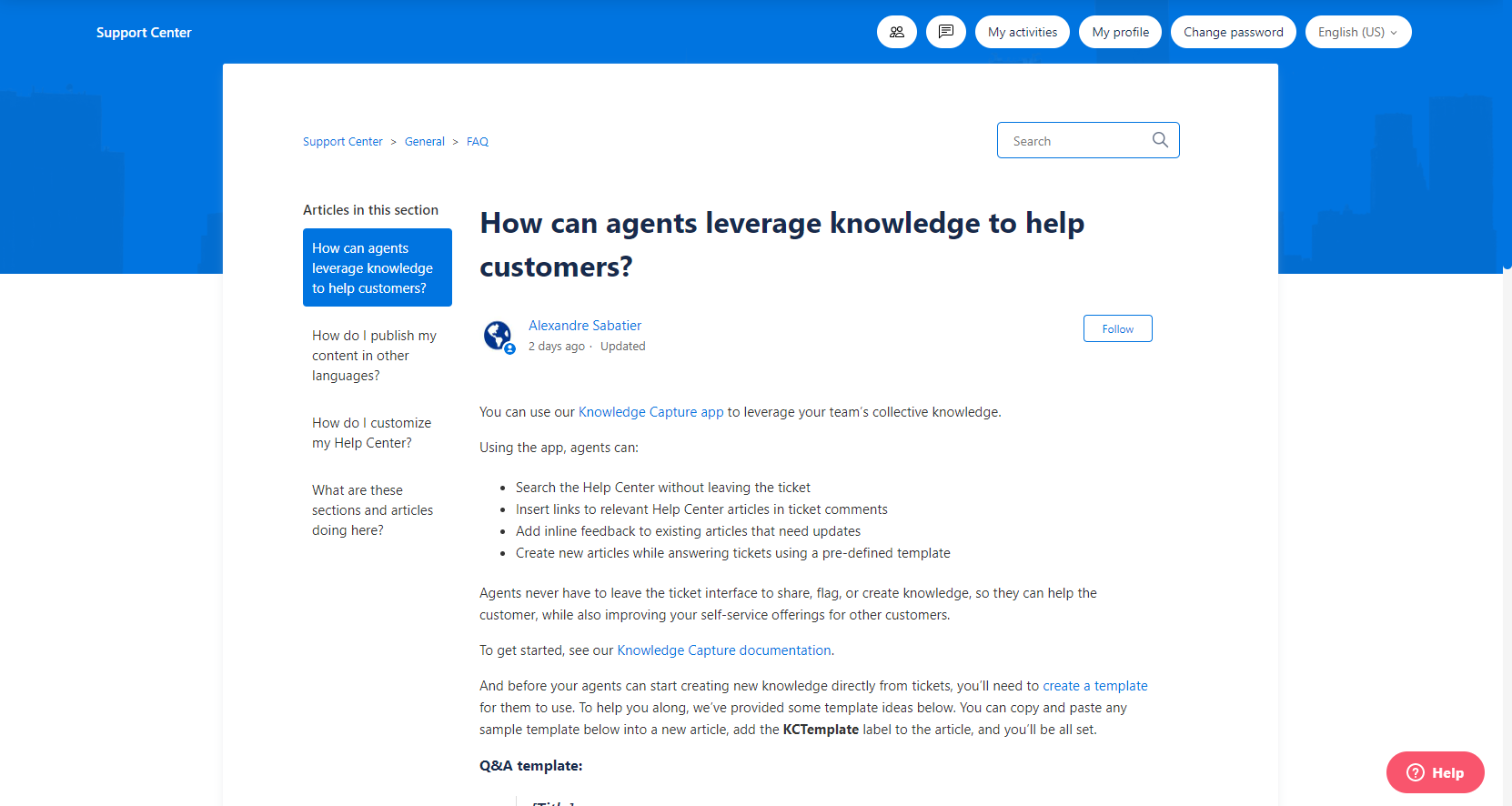 Fully customizableYou can adapt the branding, such as colors and fonts, directly from your Zendesk instance settings. All standard features are also supported - e.g., Enable community, Hide sections, etc.