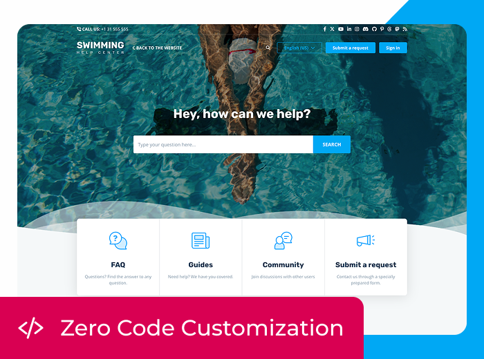 Play around with different styles and designs to reflect your unique identity. Adapt colors, images, icons, fonts, and logos: our Zendesk theme offers easy help center customization without coding.