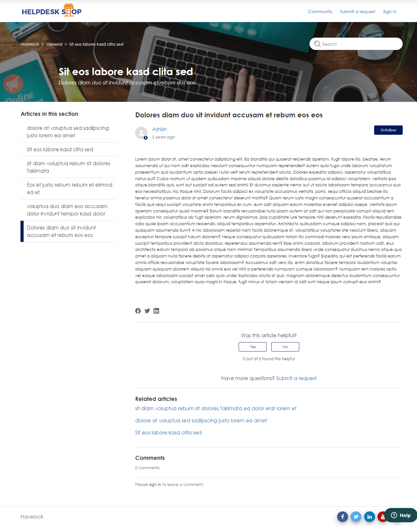 Havelock is a beautiful and customizable theme for Zendesk Guide. It is designed to serve as a solid foundation on which to build an amazing knowledge base for your customers.
