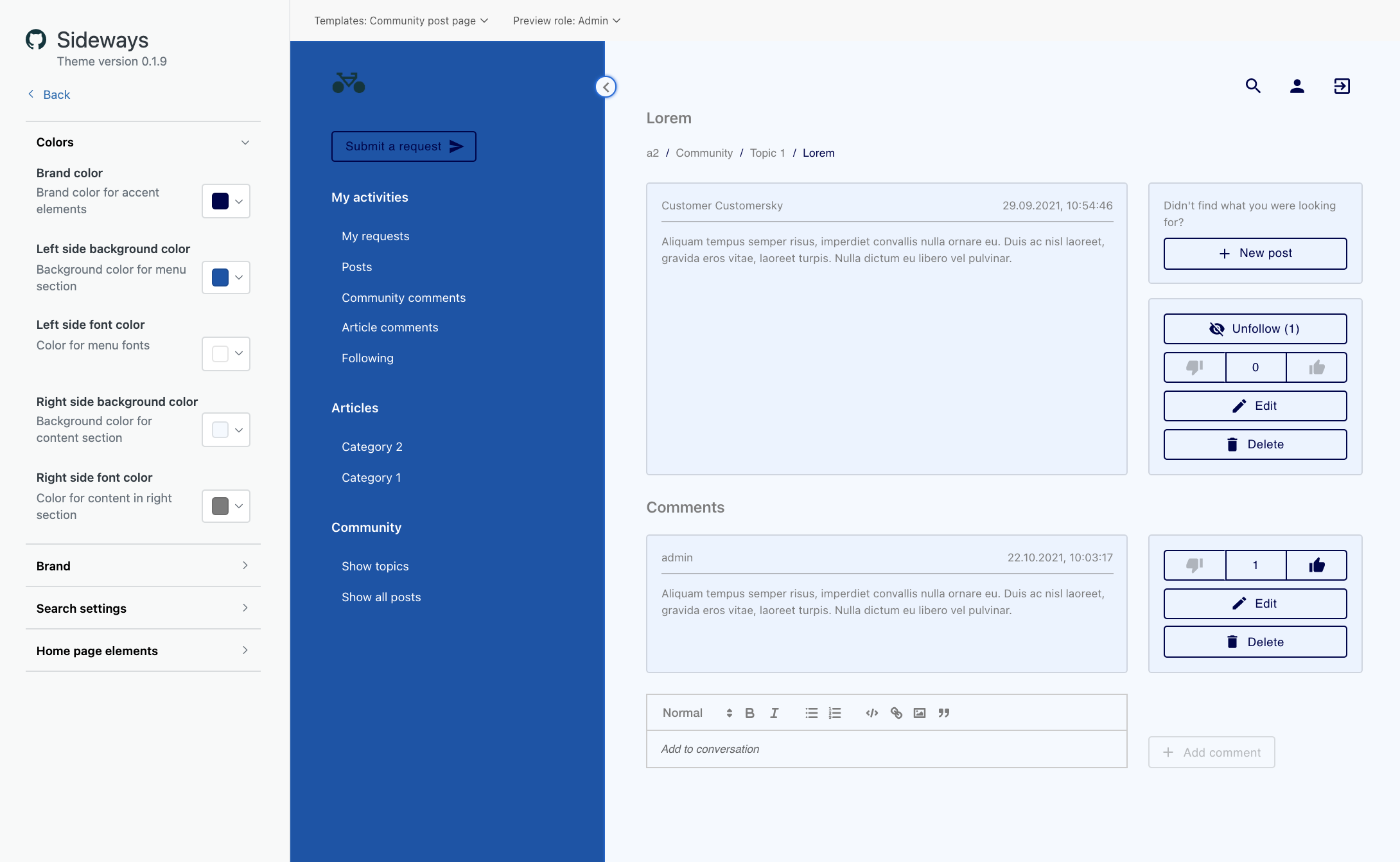 Sideways is first and only SPA theme application in Zendesk themes category. This theme is something completely new. Our unique approach give us new possibilities you never experienced before.