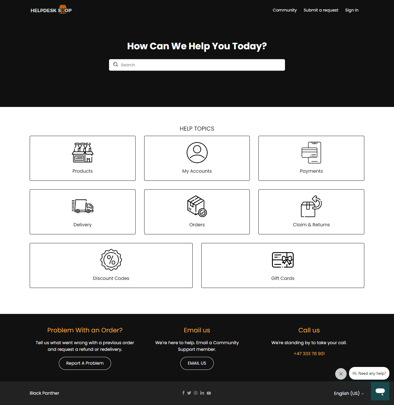 Black Panther is a fully responsive multipurpose Zendesk Help Center theme. The theme is a perfect balance between style and performance. All the elements of the help center are arranged in a way that keeps navigation super easy. The theme comes with an attractive black background at the back of a floating search box at the center of it all. It has a stunning full-screen layout with beautiful blocks and interactive design elements, which generate an airy and elegant feeling to the help center.