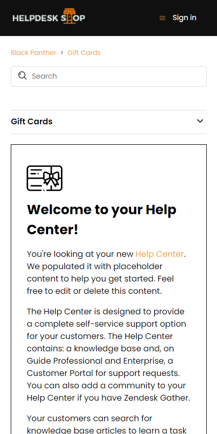 About the theme -Black Panther is a fully responsive multipurpose Zendesk Help Center (Guide) theme. The theme is a perfect balance between style and performance. All the elements of the help center are arranged in a way that keeps navigation super easy. The theme comes with an attractive black background at the back of a floating search box at the center of it all. It has a stunning full-screen layout with beautiful blocks and interactive design elements, which generate an airy and elegant feeling to the help center.This theme has multiple boxes, which are sections. It makes navigation very easy in the theme. Your sections are displayed on the home page and all the articles can be seen by clicking on the section boxes.Note:- The best way to use this feature is to make one single Category and put all the sections inside it. However, this theme only allows a maximum of twelve sections.It follows the latest trends in web design and features a brand new layout with a long list of features.
