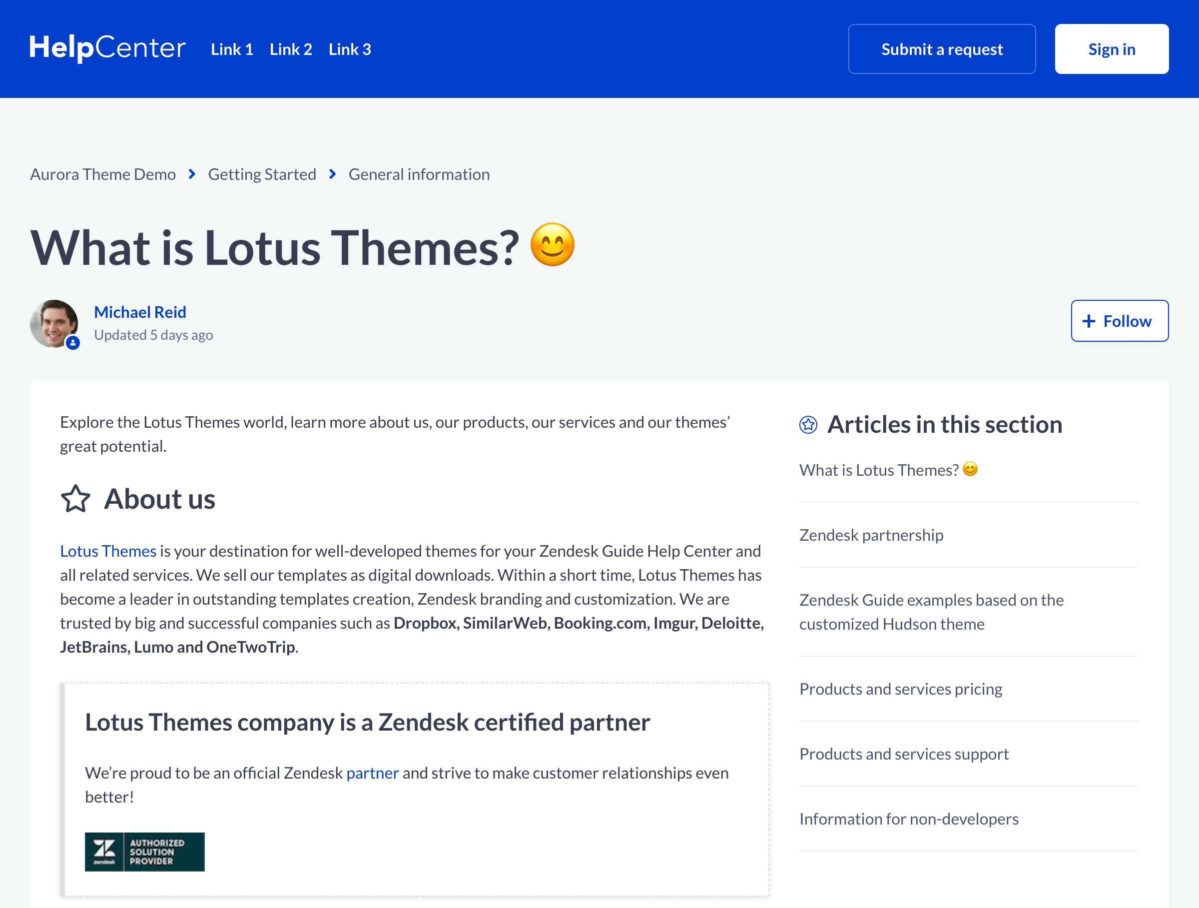 5,000+ companies have chosen Lotus Themes for their beautiful design, consistent performance, and ease of use. Even Zendesk hires us to improve their help centers. View case studies →