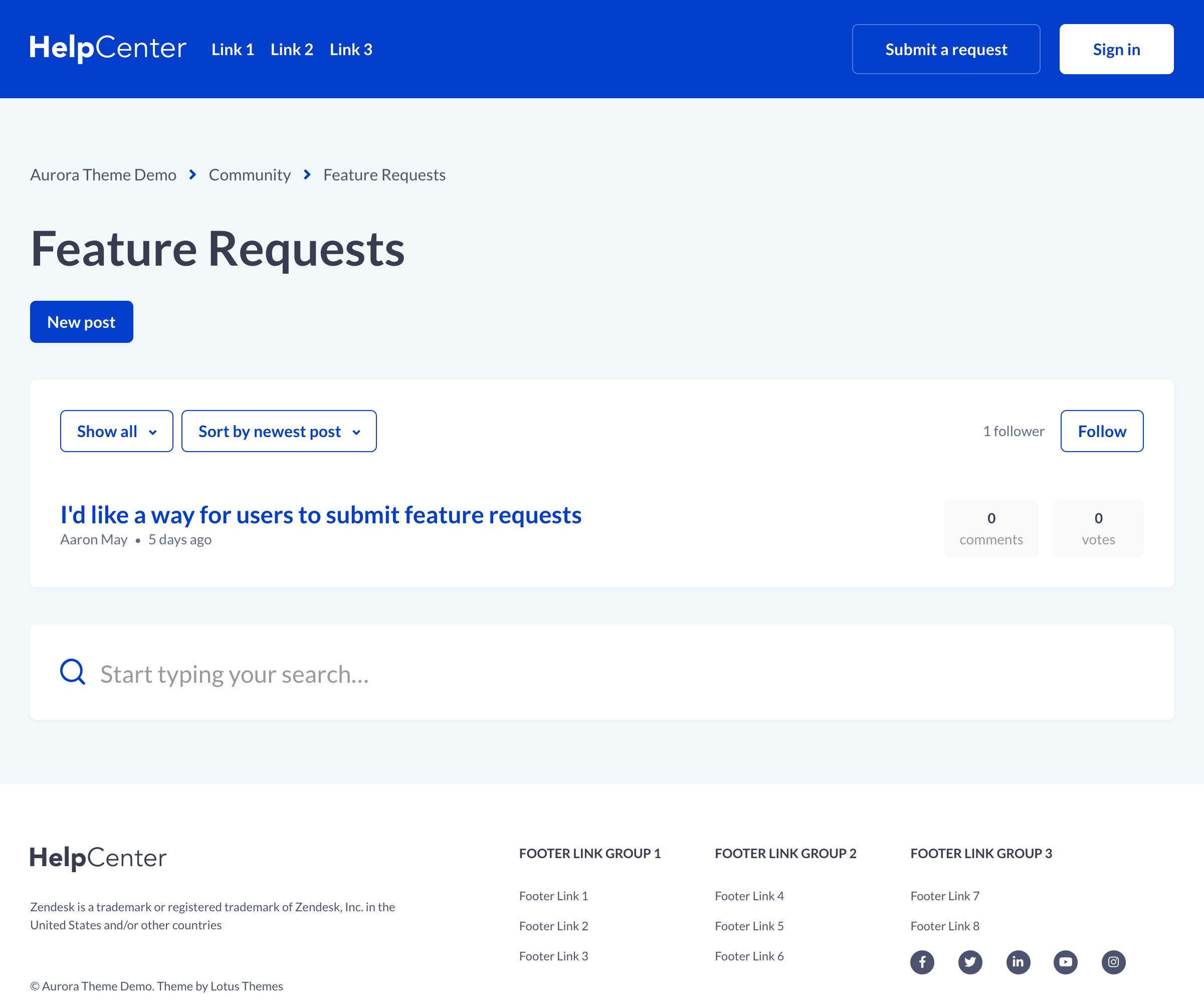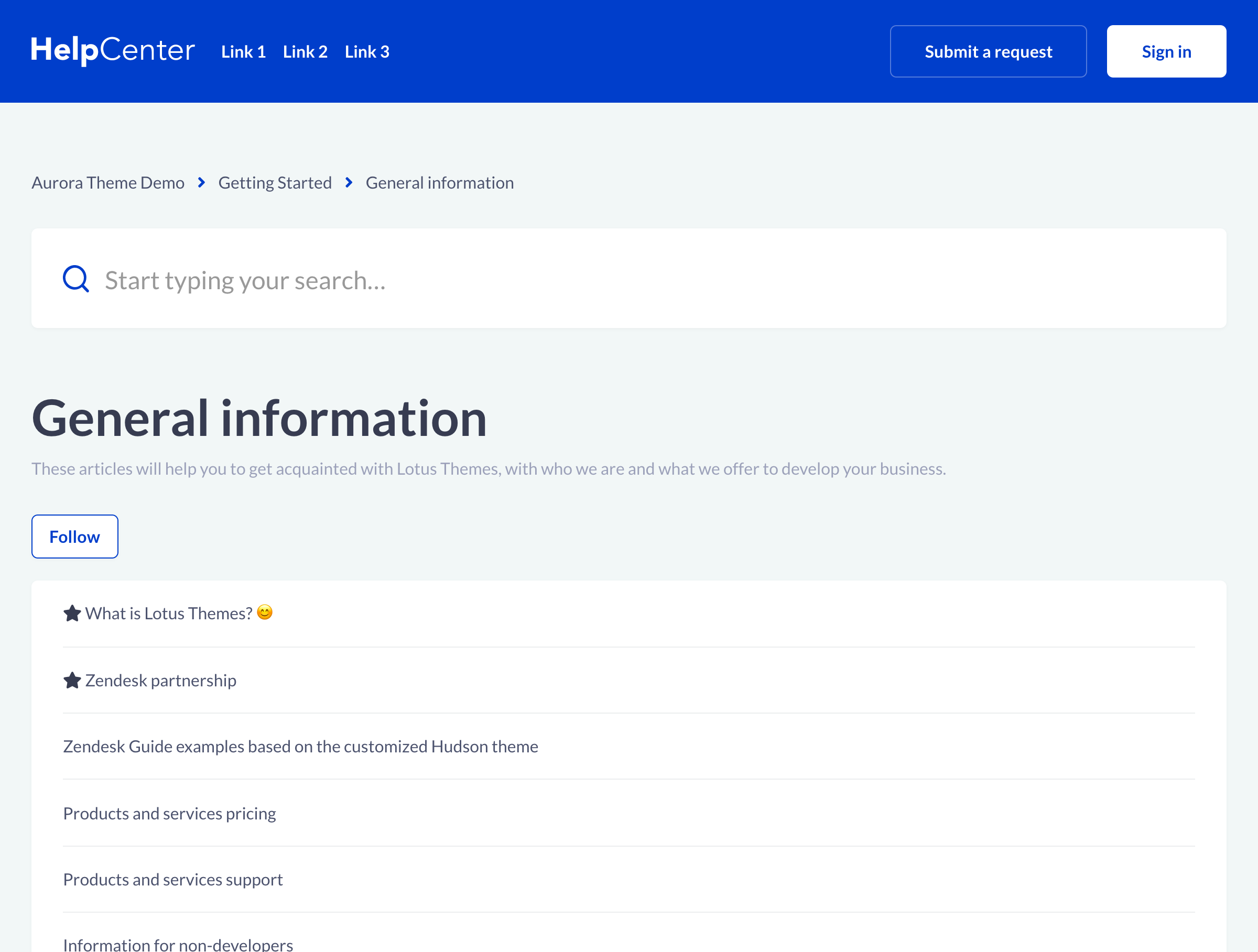 Aurora is a Zendesk theme that is perfect for a FAQ-Style Help Center because it features accordions in sections. This template is fresh, playful, and it is really fun to use.