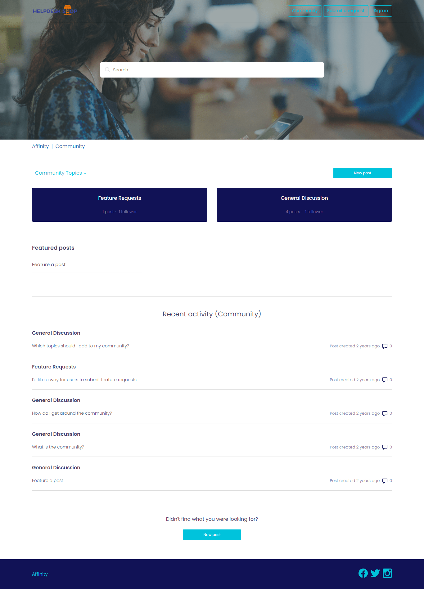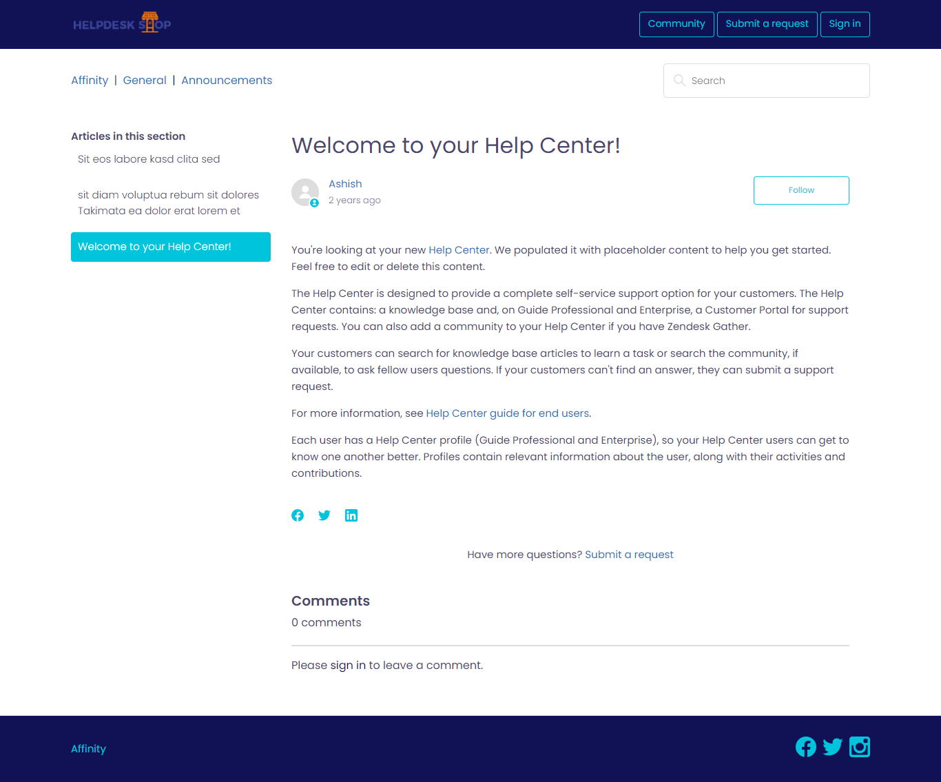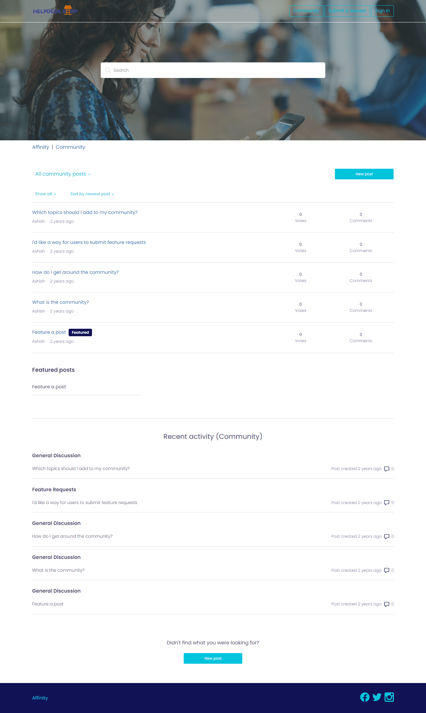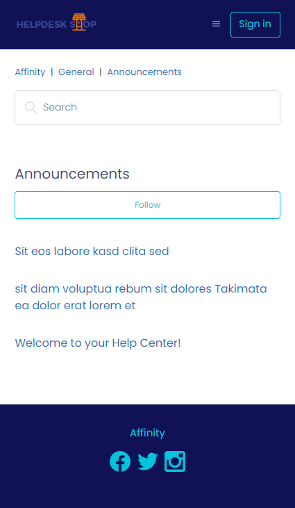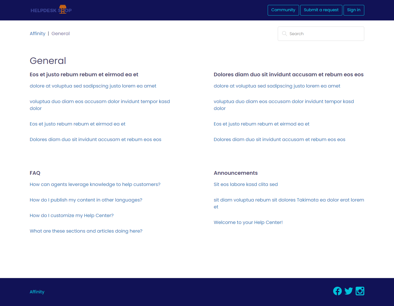 Affinity is a fully responsive multipurpose Zendesk Help Center (Guide) theme. The theme is a perfect balance between style and performance. All the elements of the help center are arranged in a way that keeps navigation super easy. The theme has an attractive image on the background and a floating search box at the center of it which gives the theme a classic touch. It has a stunning full-screen layout with beautiful blocks and interactive design elements, which generate an airy and elegant feeling to the help center.It has the custom blocks below the hero background where you can put the custom links.It follows the latest trends in web design and features a brand new layout with a long list of features.