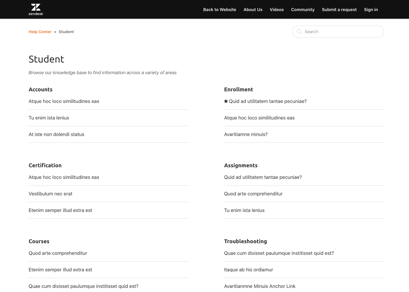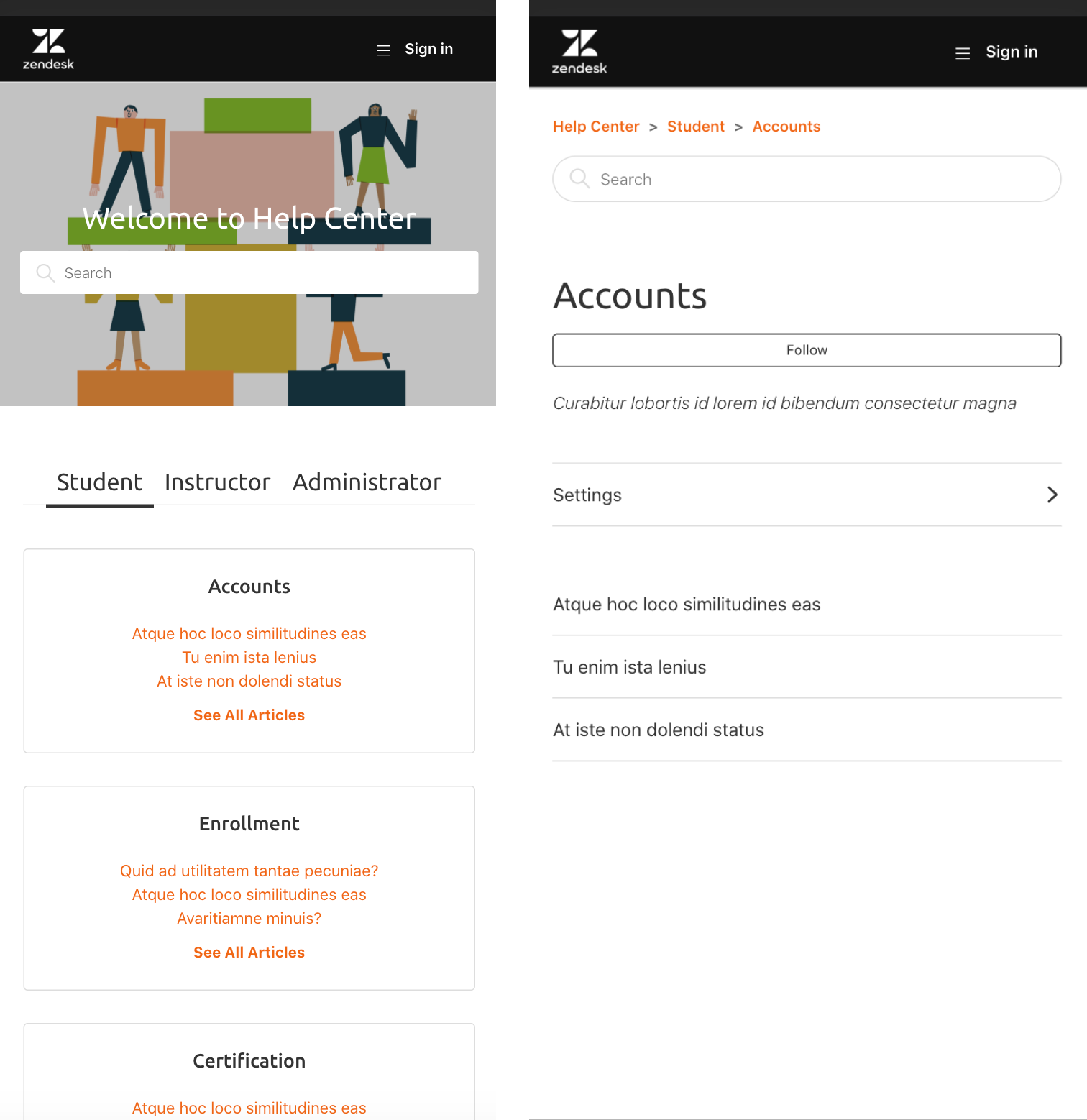 Role is a responsive and mobile-friendly Zendesk theme created by popular request. It helps to organize content around user roles, and can also be suitable when category types are limited in number (2-5 categories).