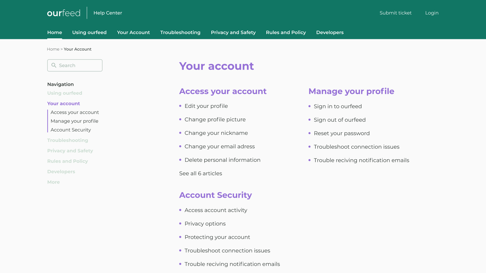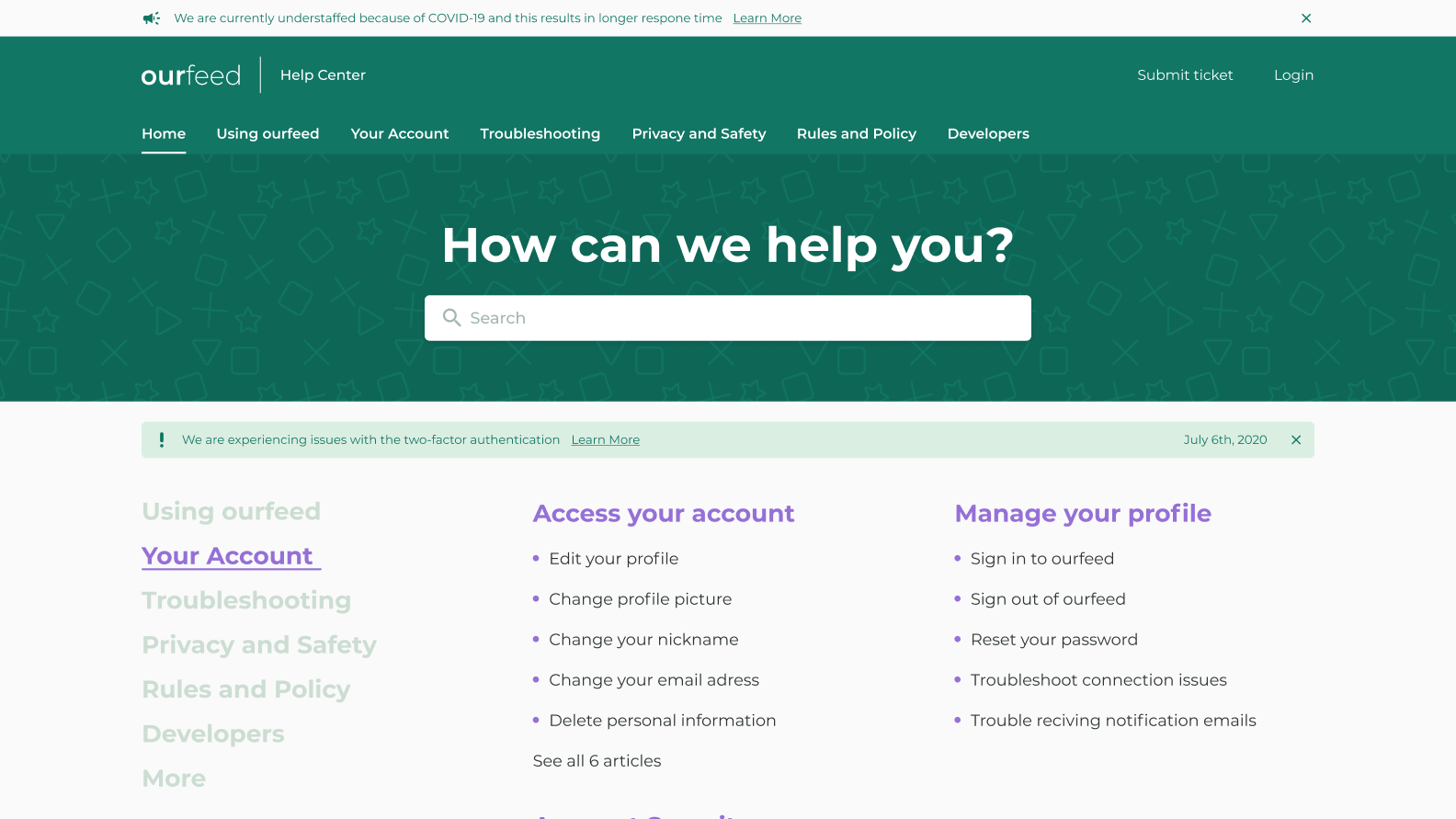 Ourfeed is our new full-featured Zendesk Guide Theme with a well-structured overview and intuitive design.