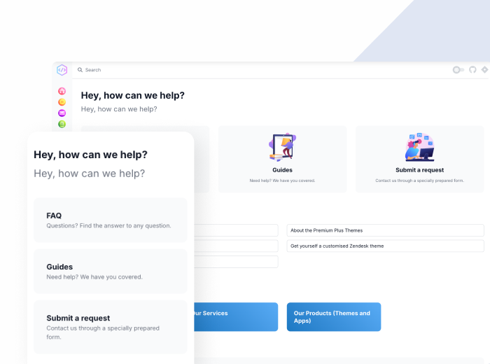 Whether your customers are using their phones, tablets or desktops, the Code Monkey theme for Zendesk is optimized for every screen. Its intuitive design makes it easy to find answers to questions in no time.