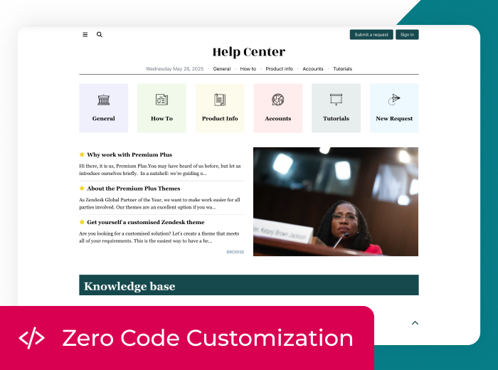 Unlike most Zendesk themes, Newspaper unlocks endless possibilities for in-house help center customization. No coding skills or extra costs required.