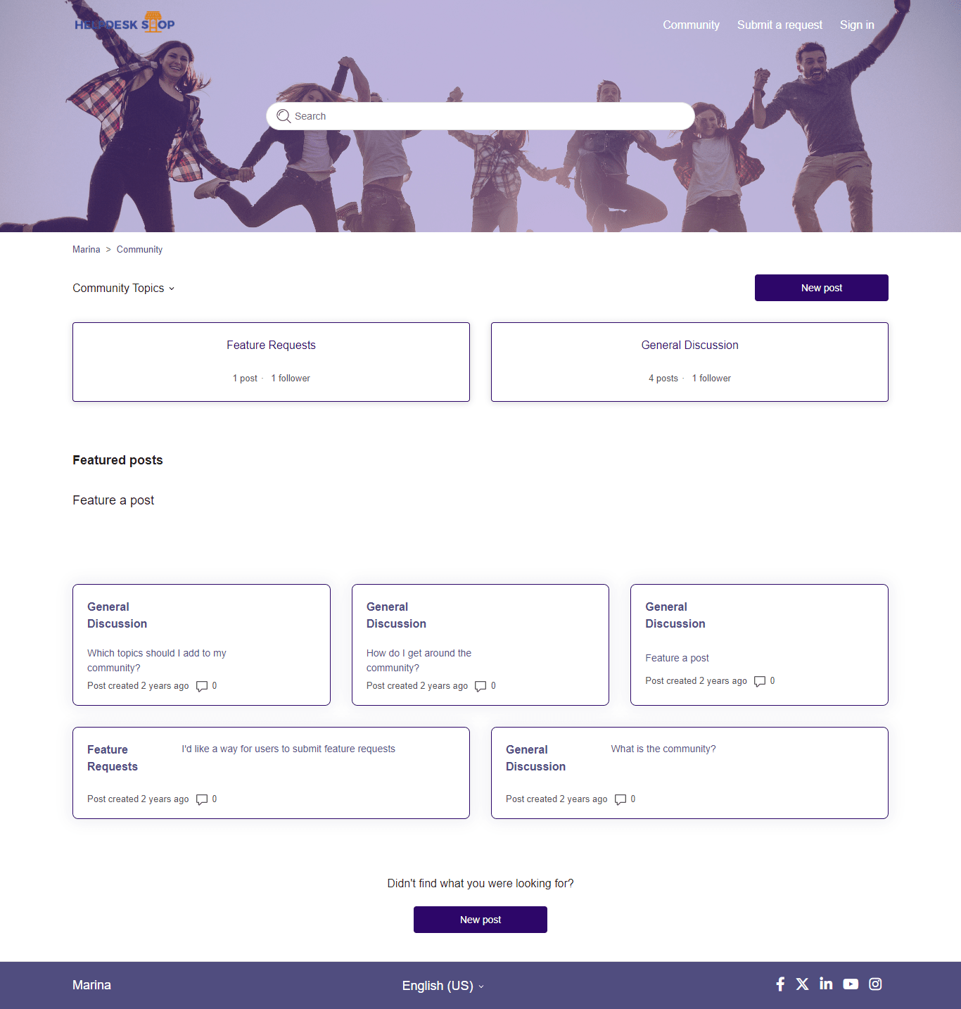 Custom Block Icons - Custom blocks are static links to any pages on your help center or your main website. It’s possible to change the link, icon, title, and description in each of them. You can hide a specific block or all of them in the theme settings and add more through customization.