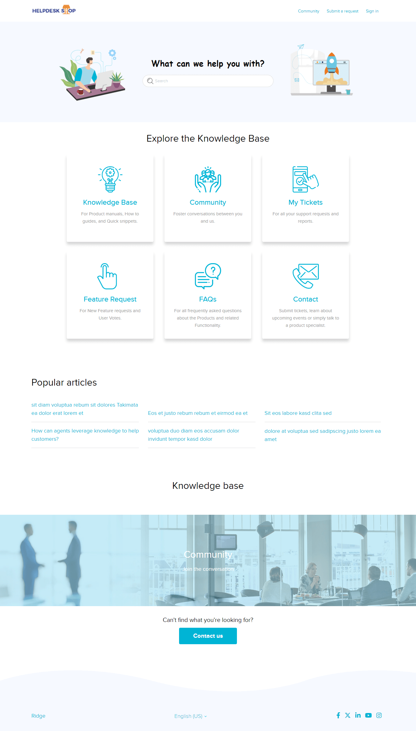 About the theme -Ridge is a fully responsive multipurpose Zendesk Help Center (Guide) theme. The theme is a perfect balance between style and performance. All the elements of the help center are arranged in a way that keeps navigation super easy. The theme comes with a large parallax image at the back of a floating search box at the center of it all. It has a stunning full-screen layout with beautiful blocks and interactive design elements, which generate an airy and elegant feeling in the help center. It follows the latest trends in web design and features a brand-new layout with a long list of features.
